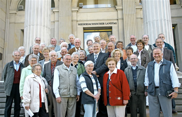 Vor dem Landtag: die Reisegruppe des Seniorenbeirates Bremervörde mit Minister Heiner Ehlen