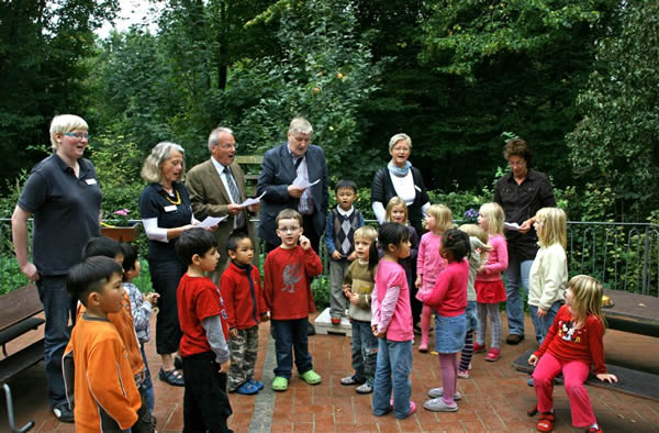 Bremervörder Zeitung vom 02. Oktober 2009 Apfelkuchen für den Minister Hans-Heinrich Ehlen besucht den Kindergarten „Abenteuerland“- Baum trug viele Früchte - von Domenica Rode – Bremervörde. Vor gut drei Jahren hat Hans-Heinrich Ehlen, Minister für Ernährung, Landwirtschaft, Verbraucherschutz und Landesentwicklung in Niedersachsen, gemeinsam mit den Kindern im Städtischen Kindergarten Abenteuerland einen Apfelbaum gepflanzt. Der Minister nahm dies zum Anlass, mal wieder persönlich vorbeizuschauen. Die Kinder und Erzieherinnen sowie Leiterin Elke Laudahn-Berger begrüßten ihn und Bürgermeister Eduard Gummich mit einem selbst gebackenen Apfelkuchen zum Kaffee. „Beim Pflanzen des Baumes haben die Kinder kräftig mitgeholfen, so dass besonders viel Erde hochgewirbelt wurde“, erinnerte sich Ehlen. Bei der Aktion anlässlich des 60. Jahrestages des Landes Niedersachsen hatten er und Sozialministerin Mechthild Ross-Luttmann (beide CDU) 120 Apfelbäume in Kindergärten und Schulen im Landkreis gepflanzt. Fast eine Woche dauerte die Aktion. Nun konnte sich der Minister aus Kalbe persönlich davon überzeugen, dass sich die Arbeit gelohnt hat, in dem er sich den leckeren Apfelkuchen gut schmecken ließ. Während des Rundgangs durch den Kindergarten zeigte sich Hans-Heinrich Ehlen beeindruckt von der Konzeption des Kindergartens „Abenteuerland“. Zum 40-jährigen Jubiläum hatten die Erzieherinnen mit den Kindern das Thema „Hundertwasser“ bearbeitet. Hiervon waren noch einige Werke ausgestellt. Derzeit widmet sich der Kindergarten einem nicht weniger anspruchsvollen Meister, nämlich dem großen deutschen Dichter Johann Wolfgang von Goethe und seinem Werk.