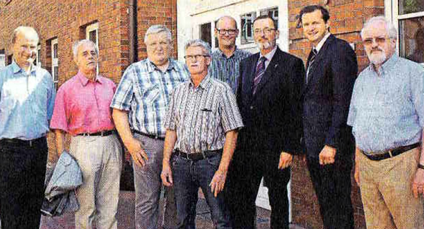 Sprachen im Ludwig-Harms-Haus in Bremervörde über das geplante Hospiz: Pastor Volker Rosenfeld (von links), Hans-Jürgen von Borstel, Hans-Heinrich Ehlen, Werner Schröder, Marco Mohrmann, Superintendent Wilhelm Helmers, Oliver Grundmann und Albert Rathjen.