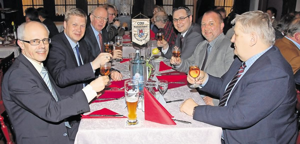Landrat Hermann Luttmann (von links), Generalsekretär Ulf Thiele, CDU-Kreistagsfraktionsvorsitzender Heinz-Günter Bargfrede, Gemeindeverbandsvorsitzender
