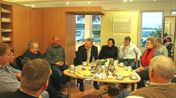 Ebenfalls von Interesse für den Landwirtschaftsminister: Die Entwicklung der Heeslinger Firmen Elbe Weser Dämmtechnik und Zimmerei Bernd Beneke, beide unter der Leitung des Letztgenannten, sowie anschließend Tischlerei Wolff und die Werbeexperten Puschert und Kruse. Nach längeren Gesprächen mit der Führungsspitze der Zevener Oste Med , stand ein Treffen im Hause WECO Baustoffe an.
