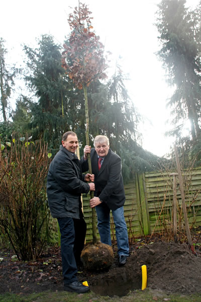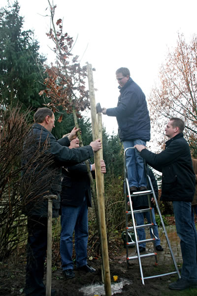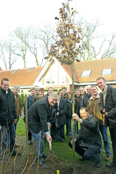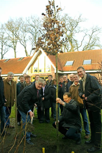 Impressionen vom 07. Dezember 2008 Impressionen vom Pflanzen einer „Minister-Eiche“ beim Dorfgemeinschaftshaus in Kalbe am 7.12.2008 KALBE . Kalber Bürger hatten die Idee, sich an einem Sonntagmorgen mit einem verdienten Bürger von Kalbe beim Dorfgemeinschaftshaus zu treffen und dort eine Eiche zu pflanzen, die ggfs. als „Minister-Eiche“ zu betrachten sei, was vom Vorstand des Wasser- und Bodenverbandes Kalber Bach als langjährigem Weggefährten des heutigen niedersächsischen Landwirtschaftsministers Hans-Heinrich Ehlen in die Tat umgesetzt wurde.