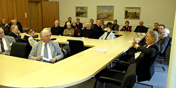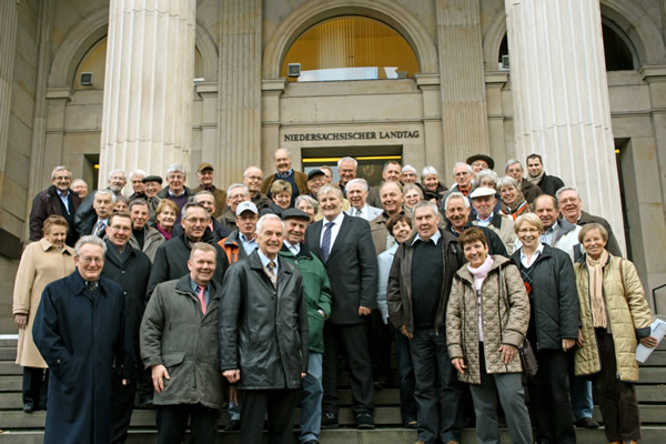 Pressebericht vom 10. Januar 2010 Senioren-Union und Schiedsleute statten Landtag einen Besuch ab Entsetzt über das Verhalten von Abgeordneten bei der Debatte im Plenarsaal Zeven/Scheessel. Auf Einladung des Minister für Ernährung, Landwirtschaft, Verbraucherschutz und Landentwicklung, Hans-Heinrich Ehlen, führten kürzlich die Senioren-Union Rotenburg und eine Gruppe der Bezirksvereinigung Stade im Bund Deutscher Schiedsmänner und Schiedsfrauen (BDS) gemeinsam eine Tagestour zum Besuch einer Landtagssitzung in Hannover mit anschließender Stadtrundfahrt durch. Geleitet wurde die gesamte Gruppe vom Schriftführer der Senioren-Union Rotenburg, Alfred Rathjen aus Westerholz, bei dem auch die Vorbereitung gemeinsam mit Hermann Niss aus Zeven für die Gruppe der Schiedsleute lag. Nach Einweisung und Film über Landtag und Landtagsarbeit mussten die Senioren von der Besuchertribüne aus durch die erheblichen Zeitverschiebungen statt der von Sozialministerin Mechthild Ross-Luttmann für die Landesregierung stichwortartig vorgetragenen schriftlichen Antwort auf die Große Anfrage der Fraktionen von CDU und FDP „Ohne uns geht es nicht – Seniorinnen und Senioren für „Niedersachsen“ mit dem Verlauf der Beratung und Abstimmung von Eingaben vorlieb nehmen. Hier mussten sie eine für viele nicht verständliche „politische Kultur in dem hohen Haus“ beim Verhalten zu Ausführungen von Abgeordneten der verschiedenen Parteien – zeitweise mit Verlassen des Plenarraumes in größeren Gruppen - feststellen. In dem anschließenden Gespräch mit dem Abgeordneten konnte Heiner Ehlen zu Letzterem ein wenig Aufklärung geben, wonach die Eingaben und übrigen Punkte der Tagesordnung vorab bereits intensiv in den Ausschüssen beraten wurden und die Abgeordneten der Parteien in den Ausschüssen auch bei der Beratung im Plenum durchweg anwesend seien. Den Gesprächen schlossen sich weitere Diskussionen in kleiner Runde beim gemeinsamen Mittagessen mit dem Minister an. Für die Schiedsleute stand anschließend das Gespräch mit dem Ministerialbeamten Peter Röthemeyer aus dem Justizministerium auf der Agenda, der vorrangig über Sachstand und Inhalt zu dem am 1.1.2010 in Kraft tretenden neuen niedersächsischen Schlichtungsgesetz und Schiedsämtergesetz informierte und mit den Beteiligten diskutierte. Bei der anschließenden gemeinsam unter Leitung einer versierten Stadtführerin durchgeführte Stadtrundfahrt mit Erläuterung der Entwicklung Hannovers anhand der im „Neuen Rathaus“ aufgestellten Modelle zu den verschiedenen Epochen der Stadtgeschichte konnten sich die Besucher von dem Lichterglanz der weihnachtlich geschmückten Landeshauptstadt überzeugen. Auf der Rückfahrt wurden noch viele Eindrücke des Aufenthaltes in Hannover ausgetauscht, wobei Alfred Rathjen für die Senioren-Union zwei weitere Fahrten nach Hannover im Juni 2010 mit Besichtigung der Herrenhäuser Gärten bzw. des Jagdschlosses und des Wisentgeheges in Springe ankündigte. Eine Aufarbeitung der leider nicht in natura erhaltenen Antwort zur Große Anfrage zum seniorenspezifischen Thema sowie eine von den Schiedsleuten angebotene Info-Veranstaltung zu den Möglichkeiten nach dem neuen Schlichtungs- und Schiedsämtergesetz soll ebenso erfolgen.