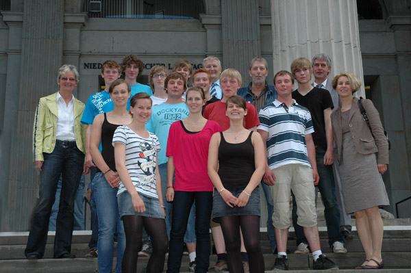 ![]() Die Gymnasiasten aus Bremervörde mit ihrem Lehrer sowie Gastgeber Hans-Heinrich Ehlen aus Kalbe und zwei Kollegen aus dem Wahlkreis Rotenburg |