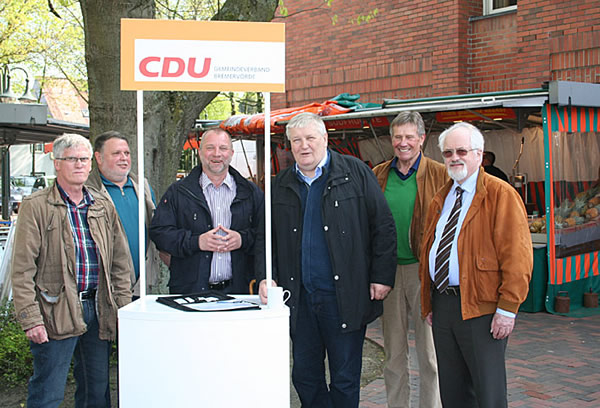 Pressemitteilung vom 06.05.2014 Bürger besprechen Anliegen direkt vor OrtDie Entwicklung der Schulpolitik im Landkreis, landwirtschaftliche Themen oder ein kurzer Klönschnack op platt: Bei der Bürgersprechstunde in Bremervörde kamen viele aktuelle Themen zur Sprache. In lockerer Atmosphäre auf dem Wochenmarkt am Rathaus nutzten etliche Bürger die Gelegenheit, ihre Anliegen direkt vor Ort den Politikern vorzutragen.