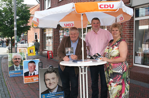 Motivierten die Bürger am Sonntag von ihrem Stimmrecht Gebrauch zu machen (v.l.): Hans-Heinrich Ehlen, Volkhard Kownetka und Katharina Merklein. zurück |