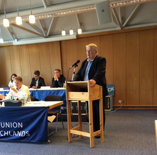 Heiner Ehlen spricht Grußwort beim JU-Bezirksparteitag im Stadeum in Stade am 4.10.2014