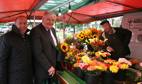 Vereinsblatt der Zevener Zeitung vom 1. September 2010 Sprechstunde mit Heiner Ehlen gut besucht Oftmals lassen sich komplexe Sachverhalte im Gespräch unter vier Augen besser erklären, persönlicher als ein schriftlicher Antrag ist es allemal, und mitunter kann so manches Problem unkompliziert gelöst werden. Aus diesen Gründ3en nutzten viele Bürger am Freitagvormittag die Sprechstunde von Heiner Ehlen im CDU-Bürgerbüro in der Zevener Fußgängerzone. Nach einem Rundgang mit seinem Mitarbeiter im Büro, Hans-Joachim Jaap, über den Wochenmarkt (Foto) nahmen sich der Landtagsabgeordnete und Hans-Joachim Jaap viel Zeit, um ausführlich mit den Bürgerinnen und Bürgern über deren Anliegen zu sprechen. Geöffnet ist das CDU-Bürgerbüro in der Langen Straße 23 montags bis freitags (außer mittwochs) von 9 bis 12 Uhr.