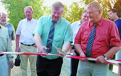 der Sandbosteler Bürgermeister das symbolische Band durch und übergab