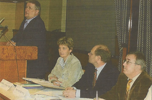 Zevener Zeitung 24. April 2004 „Stärkung der Hauptschule“, Programm der Zukunft vorgestellt Zeven (mi) Am vergangenen Donnerstag referierten Regierungsdirektorin Christa Lampe und der Geschäftsführer der Kreishandwerkerschaft Aschendorf-Hümmling (2.v.r.) vor Vertretern aus Handwerk, Industrie, allgemein- und berufsbildenden Schulen sowie Mitgliedern der CDU-Kreistagsfraktion über Möglichkeiten, Hauptschüler durch sogenannte Praxistage zu fördern und aufzuwerten. Die Veranstaltung im Hotel Spreckels war auf Inititative von Minister Ehlen (links), Landtagsabgeordneter Mechthild Ross-Luttmann (2. v.l) und dem Vorsitzenden des „Arbeitskreises Schule“ Georg Eule zustand gekommen. Rechts im Bild Geschäftsführer Rainer Christmann von der Kreishandwerkerschaft Bremervörde. Über den Verlauf wird in der Ausgabe des Sonntagsjournals am 25.4.2004 ausführlich berichtet.