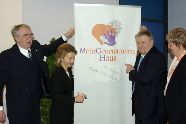 Nach den Reden und einem Rundgang durch das Haus war Ursula von der Leyen zufrieden. Die Großfamilie gebe es nicht mehr, jetzt müsse die Gesellschaft die richtige Antwort geben. Es gehe darum, wieder die Rahmenbedingungen für die Weitergabe von Erfahrungen und den Dialog der Generationen zu schaffen. Landkreis und Stadt hätten in den Familienatlas geschaut und richtig reagiert. Bemerkenswert sei vor allem, dass man in Zeven sozusagen auf der grünen Wiese gestartet sei. Und das mit bemerkenswertem Erfolg .