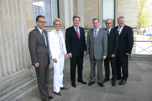 Samtgemeindebürgermeister Frank Holle (v.li.), Sozialministerin Mechthild Ross-Luttmann, Ministerpräsident Christian Wulff, Ausstellungsleiter Dirk Gieschen, Landrat und Schirmherr Hermann Luttmann, Landwirtschaftsminister Hans-Heinrich Ehlen.