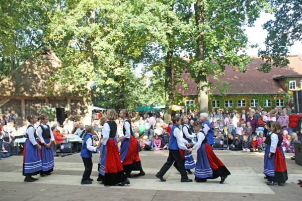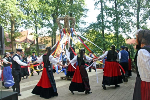 Der Spielmannszug Weertzen sorgte für die musikalische Umrahmung und eröffnete den Festnachmittag am Heimathaus. Der neue Vorsitzende der Landjugend, Sven Vollmers aus Freyersen, brachte sein Lampenfieber gut unter Kontrolle und moderierte locker durch das Programm. Die „Börd Heesler Kinnerdanzers“ unter der Leitung von Marion Schneider gefielen mit ihrer Freude an Musik und Bewegung. Die „großen“ Tänzerinnen und Tänzer übernahmen den Bändertanz. An sich sind Erna und Johann Klindworth und ihre Trachtentänzer eine lustige Truppe. Nicht so am Sonntag, nachdem die Sprecherin den schmerzlichen Verlust einer Tanzfreundin bekannt gab: „Wir tanzen für Angelika“.