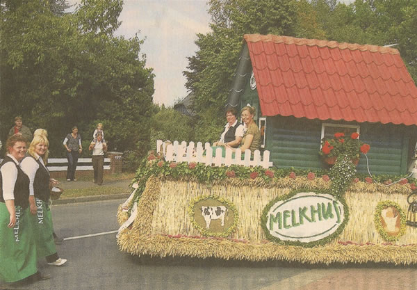 Die Weertzener Erntewagenbauer aus der Bahnhofstraße mit ihrem Melkhuus (Foto: gh.)