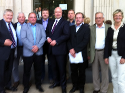 Die Vertreter der Bürgerinitiative mit den beiden Ortsbeauftragten sowie MdL Heiner Ehlen (links), Bürgermeister Gerhard Holsten (2. von links), Minister Jörg Bode (5. von links) und MdL Mechthild Ross-Luttmann vor dem Landtagsportal.