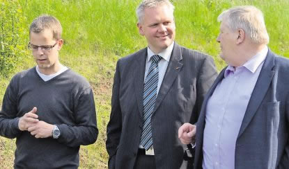 Björn Thümler (Mitte), Vorsitzender der CDU-Fraktion im Landtag zu Besuch in Hanstedt. Dort besichtigte er unter anderem mit seinem Fraktionskollegen Hans-Heinrich Ehlen (rechts) und Betriebsleiter Heiko Gerken (links) die Biogasanlage an der Straße zwischen Hanstedt und Breddorf. Anschließend wurde über die EEG-Novelle diskutiert.