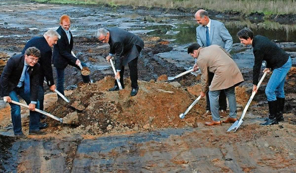 Kollektiv wurde emsig der Spaten geschwungen, um den offiziellen Startschuss für die Erschließung der 28 Hektar großen Fläche des ersten Abschnitts