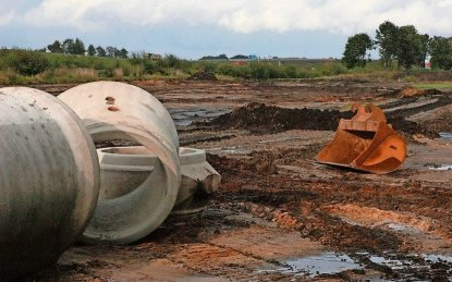 ELSDORF. Baustellen pflegen zuweilen schlammig und schmutzig zu sein. Einige der rund 30 Teilnehmer der kleinen Zeremonie für den ersten Spatenstich im Elsdorfer LogInPark ignorierten das, andere hatten sich Gummistiefel in den Kofferraum gepackt. Unabhängig vom Schuhwerk waren alle Offiziellen und Gäste sichtbar gut gelaunt, denn jetzt geht es flott voran mit der Erschließung der Fläche für Industrie und Gewerbe.
