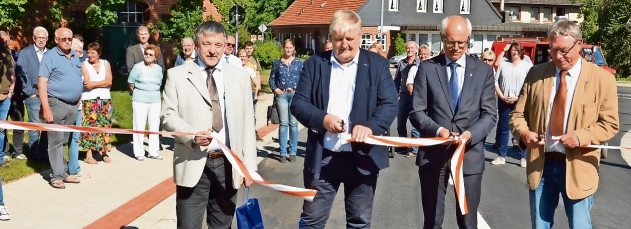 Lob und Dank für die tatkräftigen Männer und die geduldigen Anlieger gab es vor dem symbolischen Durchschneiden eines Bandes auch von Bürgermeister Armin Springwald und dem Landrat. „Alles gut gelaufen“, lautete Herrmann Luttmanns knappes Fazit, bevor er appellierte: „Fahren Sie weiter vorsichtig und langsam.“ Die Folgen, die die langwierige Sperrung der Hepstedter Straße für die Poststraße hatte, würden noch behoben, versprach er.