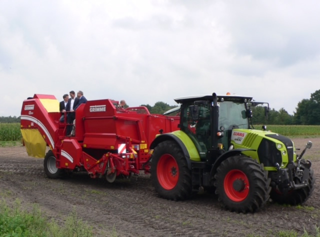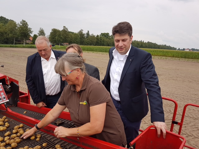 Die Agrarpolitiker durften mit dem Erntewagen mit aufs Feld fahren.