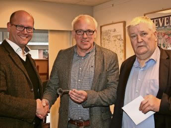 Der Landtagsabgeordnete Dr. Marco Mohrmann (links) erhält aus der Hand vom Vorsitzenden des CDU-Samtgemeindeverbandes, Andreas Bellmann, den symbolischen Schlüssel. Gleichzeitig wurde Heiner Ehlen verabschiedet.